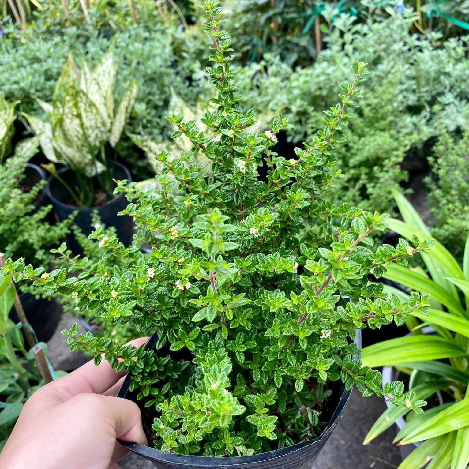 Cây hàm hương là loại cây thân gỗ nhỏ, có lá xanh quanh năm và tỏa mùi hương nhẹ khi chạm vào. Cây thường được trồng trong chậu để trang trí trong nhà, ban công hoặc sân vườn.