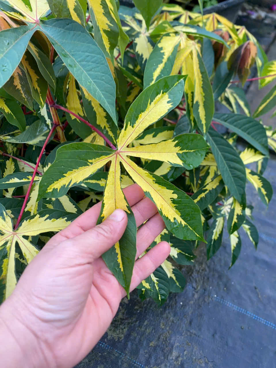 Có thể thu củ: tuy chủ yếu trồng làm cảnh, nhưng giống này vẫn cho củ ăn được như khoai mì thường.