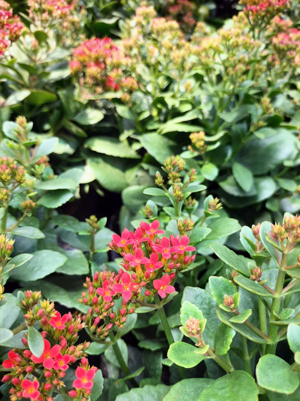 Cây sống đời thuộc nhóm cây mọng nước, thân thấp, lá dày và xanh đậm. Hoa mọc thành chùm trên ngọn, cánh nhỏ xinh, màu đỏ rực rất nổi bật.